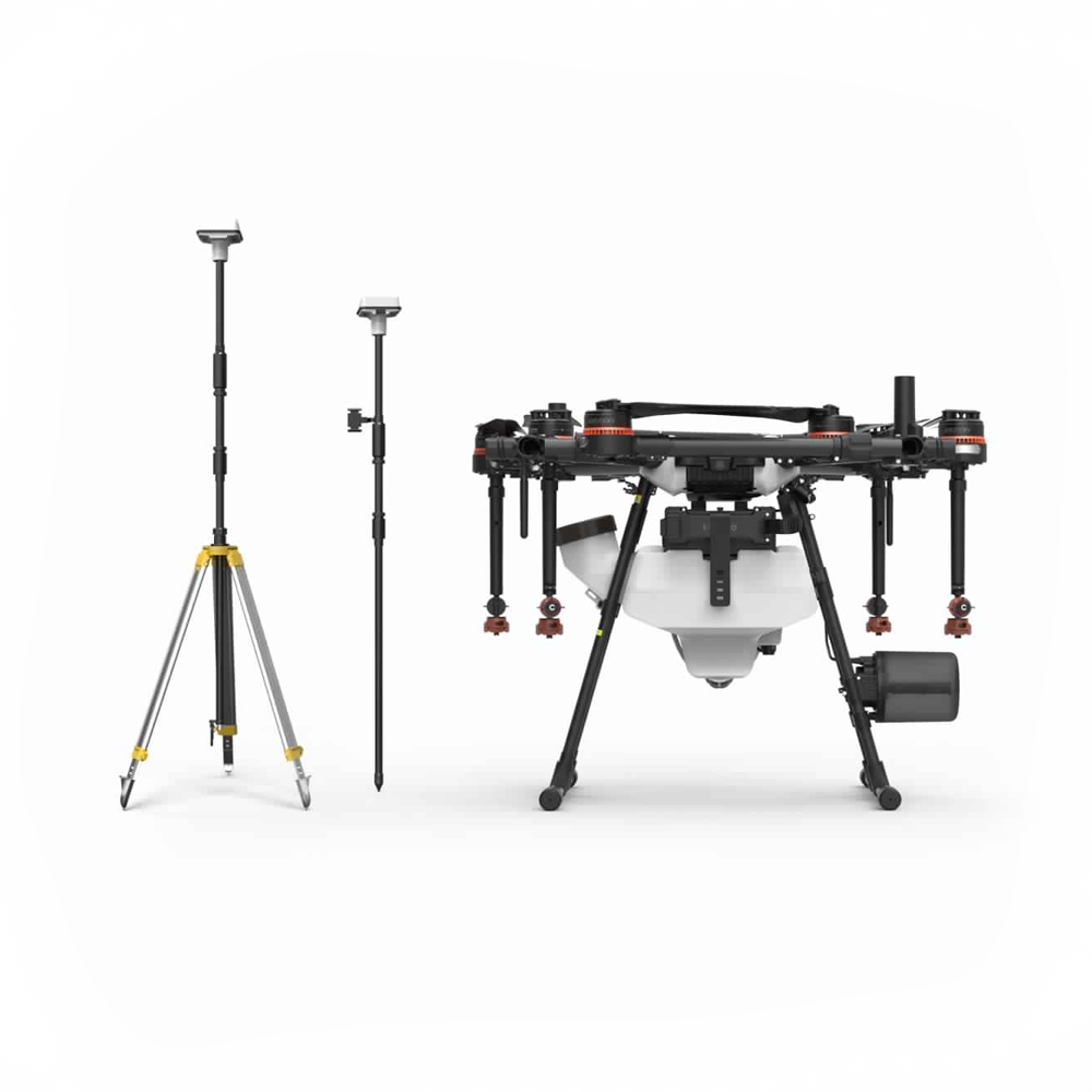 The MG-1P RTK is powered by DJI’s high-precision D-RTK navigation and positioning technology which offers centimeter-level positioning that is essential for industrial applications. Dual-antenna direction finding technology gives strong resistance against electromagnetic interference, ensuring flight safety even when the aircraft is flying near high-voltage power lines or in other complicated environments.The MG-1P RTK works in tandem with a new base station and D-RTKTM handheld mapper,[3]which receives positioning data from the onboard RTK module to accurately measure fields and transmits results to the remote controller for precise planning.